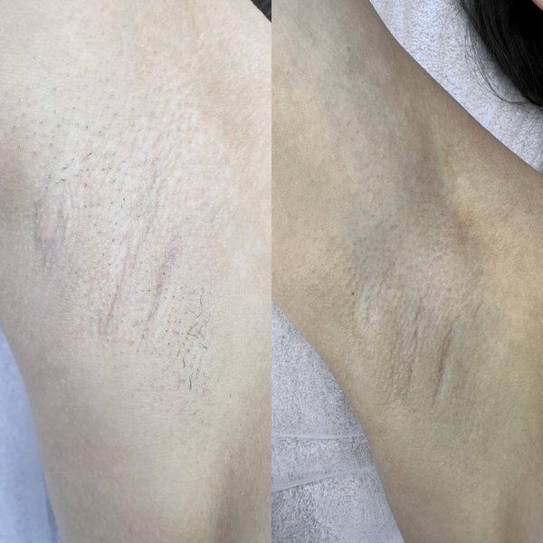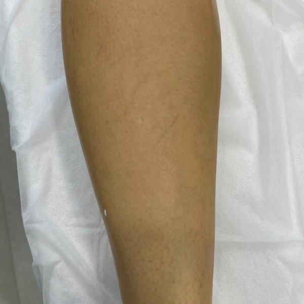Пациентка обратилась в клинику после того, как на протяжении года проходила курс в другой студии. Отмечала отсутствие результата на голенях. На фото результат после 1 процедуры в нашей клинике.